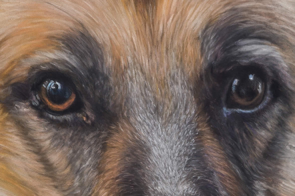 The image of Ben was quite small on the photo, it was enlarged and reprocessed. The background replaced with a simple, complimentary fill and some fur work added to replace the arms of the owner.