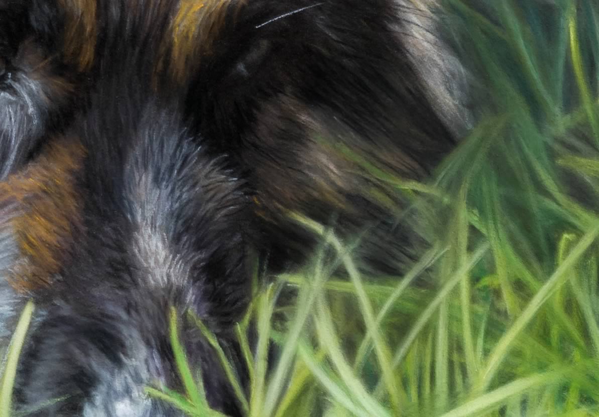 Blue was shot in the garden on a bright day in full sun making his fur look more silver. The ducks adjusted in post processing to match the values of Blue.
