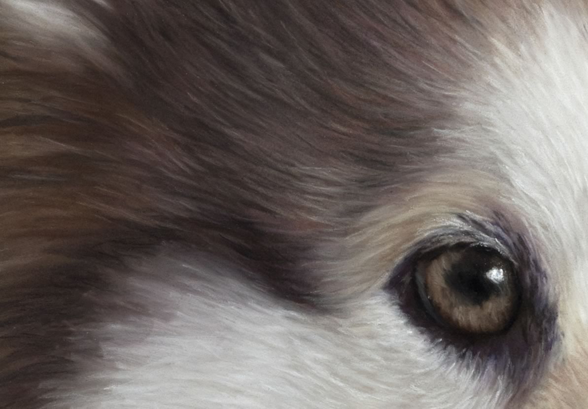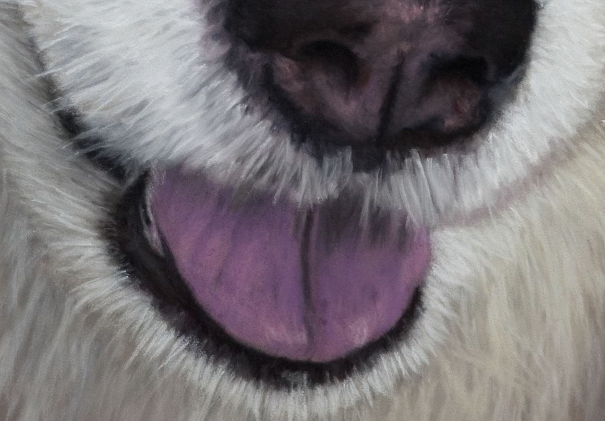 Every portrait has its own unique challenges. Malik is no exception. The fur colour has hints of violet and purple and trying to achieve the same tone from layering the pastels was quite challenging.
